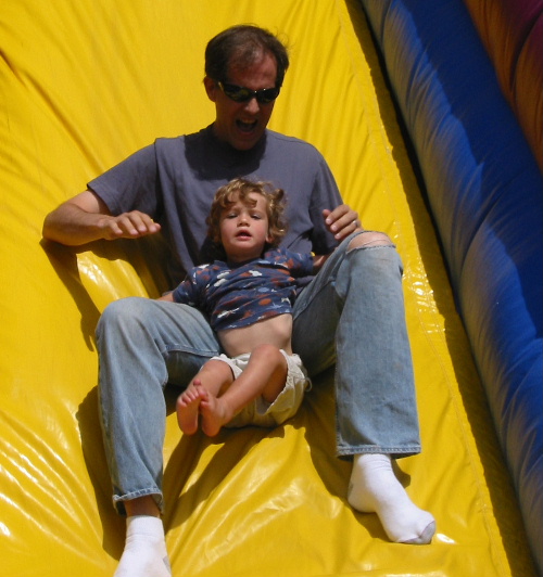 and bounce down a big yellow slide. We really wanted to try