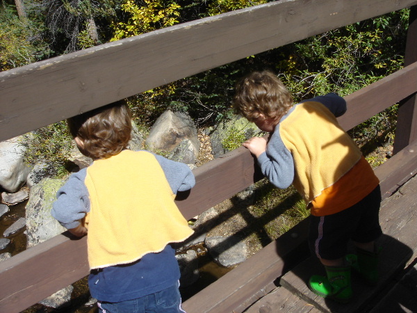 bridge over the Roaring Fork River. We play Pooh Sticks by throwing